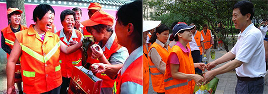 端午將至,農歷的五月初五這天的一大早,舒特通州區保潔發現活動現場的桌上就擺好了社區工作人員準備好的粽葉、糯米、紅棗、細繩等食材和工具。舒特還了解到社區特意請了一位包粽子包得很好的居民給大家教授方法。在居民及志愿者的共同學習觀摩中,粽子葉、糯米和棉線經過快、準、巧的包扎,都出落成了像模像樣的粽子。一旁社區老年培訓班的學員也來助興,他們為居民帶來了蒙古舞、大合唱、葫蘆絲演奏等熱鬧紅火的文藝節目。兩個多小時后,在大家的共同努力下,近千只粽子新鮮出爐。居民們提著新鮮的粽子,來到了社區低保家庭、空巢老人、殘疾貧困家庭以及轄區工作在一線的保安與保潔環衛工人身邊,將剛包好的粽子送給他們,社區的舉辦此次活動的初衷就是希望他們也過上一個快樂幸福的端午節。